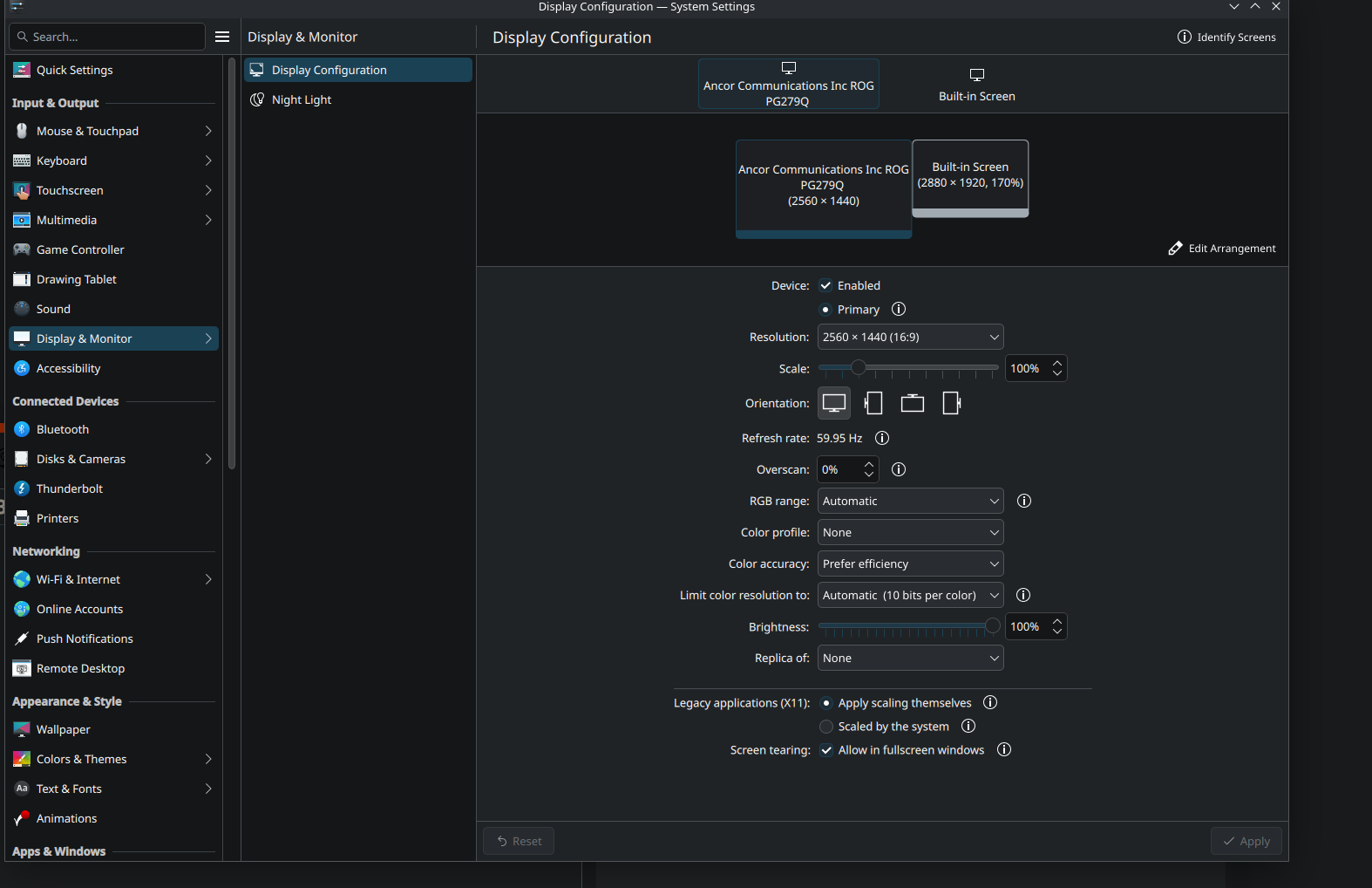 I was able to find information in the internet, thanks. By the way, do you run Desktop Editors on that screen or on built-in display? I can see that for the built-in one you have 170% scaling – in terms of test may I ask you to see 100% for that screen too and check if the same issue occurs?