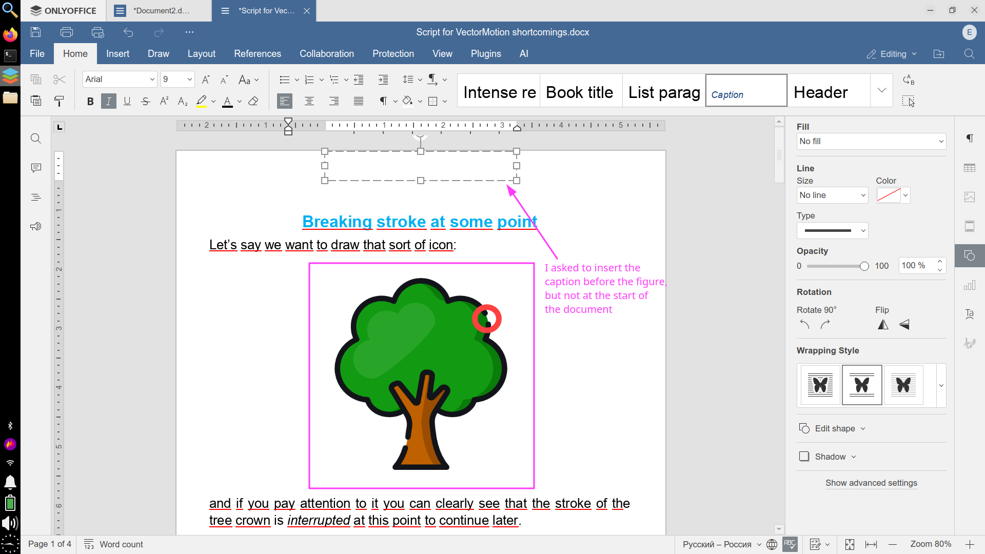Could you record a short video showing the issue in action (e.g., adding a caption to a figure and it jumping to the document’s start)? Please upload it to ONLYOFFICE DocSpace or kDrive/G drive and share the link. This will help us pinpoint the bug and work on a fix for future releases.