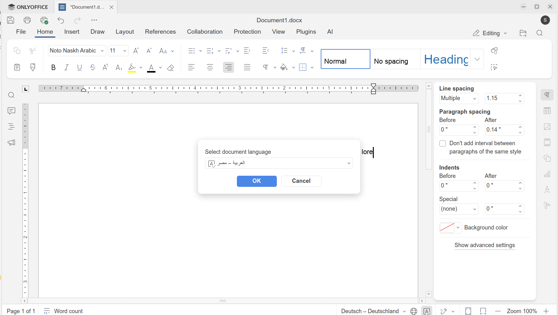 I am using linux as my OS and run onlyOffice as desktop version. I have several Arabic fonts installed, but none shows up in Arabic letters. How can I write in an English essay an Arabic quotation?