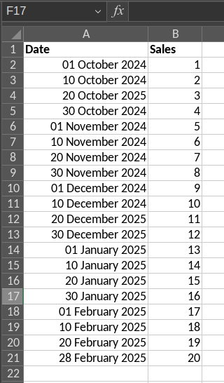 Furthermore, I believe that if one has data that spans over several years, all the months (e.g. Jan23, Jan24, Jan25) are lumped together in the same “Jan” column. I believe that the year number is not respected at all.