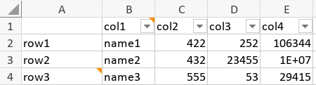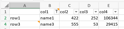 Then pressing the Filter button (alternatively, Ctrl+Shift+L), results in the file as follows: