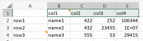 For example, taking the reference file above again, the way I had applied the filter was that I selected B1 to E4, as follows: