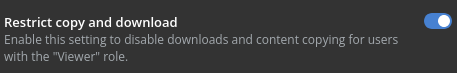 When I set the option to disallow copy to people with the “viewer” role (as seen bellow)