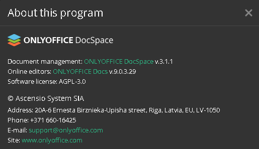Can you share a screenshot with information about your DocSpace in particular? You can find it by clicking three dots next to your avatar in DocSpace > About this program.