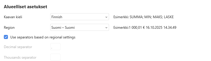 We understand the problem - the separator marks are showing as commas (,) instead of periods (.) as they should be in Finnish locale.
