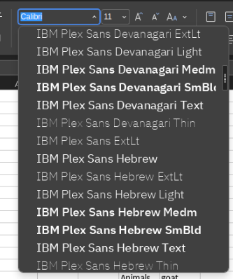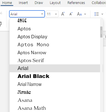 Display only the font family name (e.g., “Arial”, “Calibri”, “Times New Roman”)