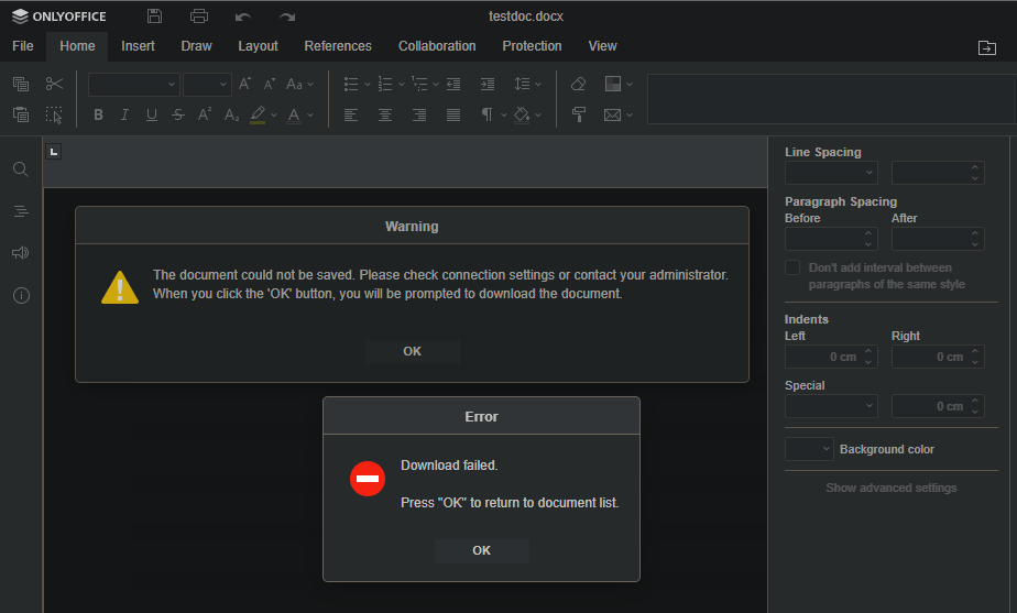[2023-08-29T17:34:16.657] [ERROR] [localhost] [1171698409] [uid-1] nodeJS - error downloadFile:url=http://<PC_NAME>/webeditor-ajax.php?type=download&fileName=testdoc.docx&userAddress=fe80__3707_a2d1_258d_57df;attempt=3;code:undefined;connect:undefined Error: Error response: statusCode:404; headers:{"date":"Tue, 29 Aug 2023 17:34:16 GMT","server":"Apache/2.4.51 (Win64) OpenSSL/1.1.1l PHP/8.0.13","content-length":"294","keep-alive":"timeout=5, max=100","connection":"Keep-Alive","content-type":"text/html; charset=iso-8859-1"};