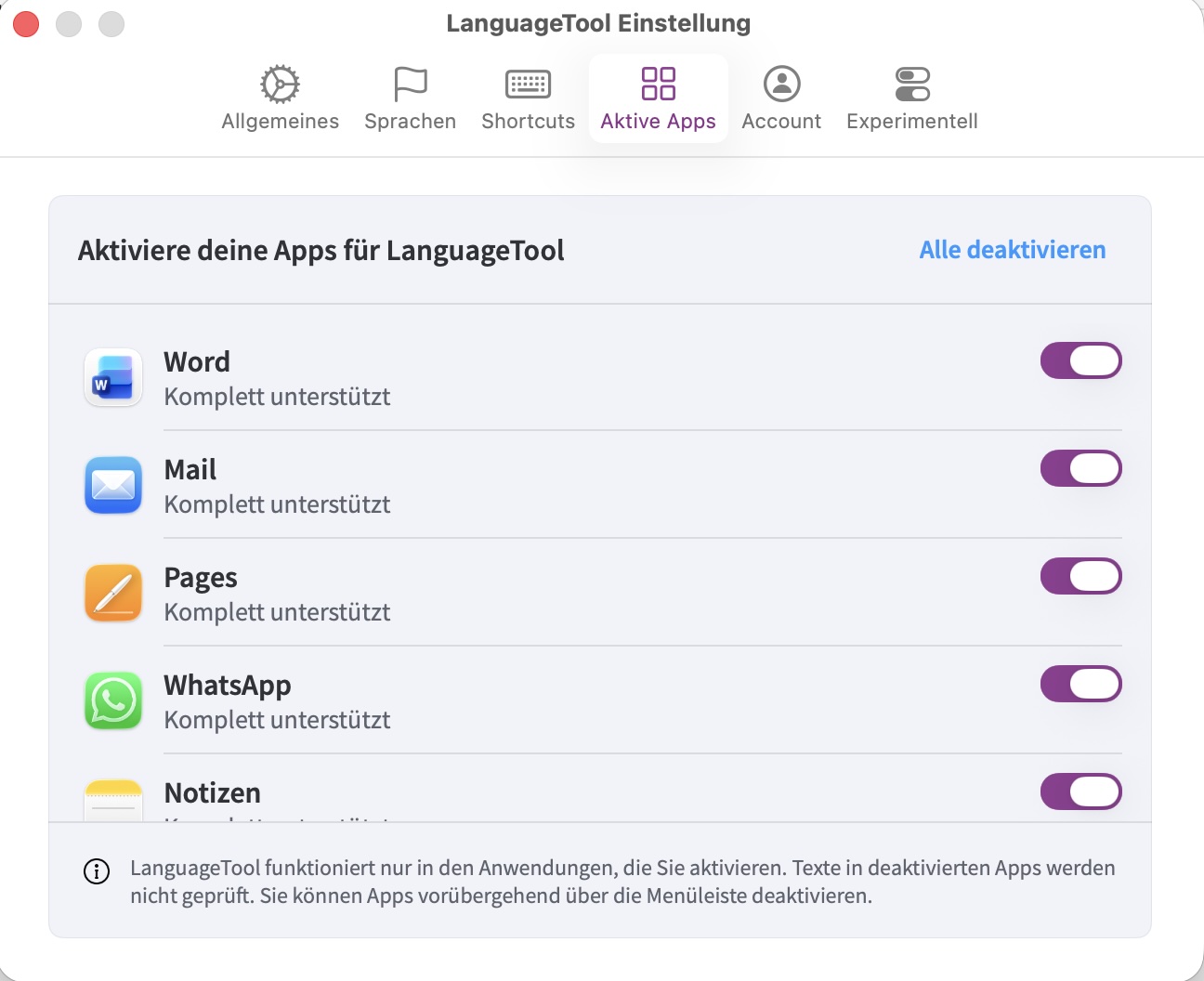 The plugins are activated in the LanguageTool settings. If the macOS desktop App is installed, one can activate/deactivate the corresponding plugin, see attached screenshot.