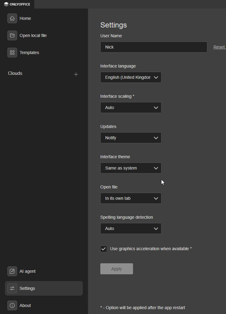 I wanted to add a cloud to my ONLYOFFICE Desktop app on Windows, but no longer saw any option to do so. I had already added two clouds before without any problems. But now the ‘+’ option disappeared.