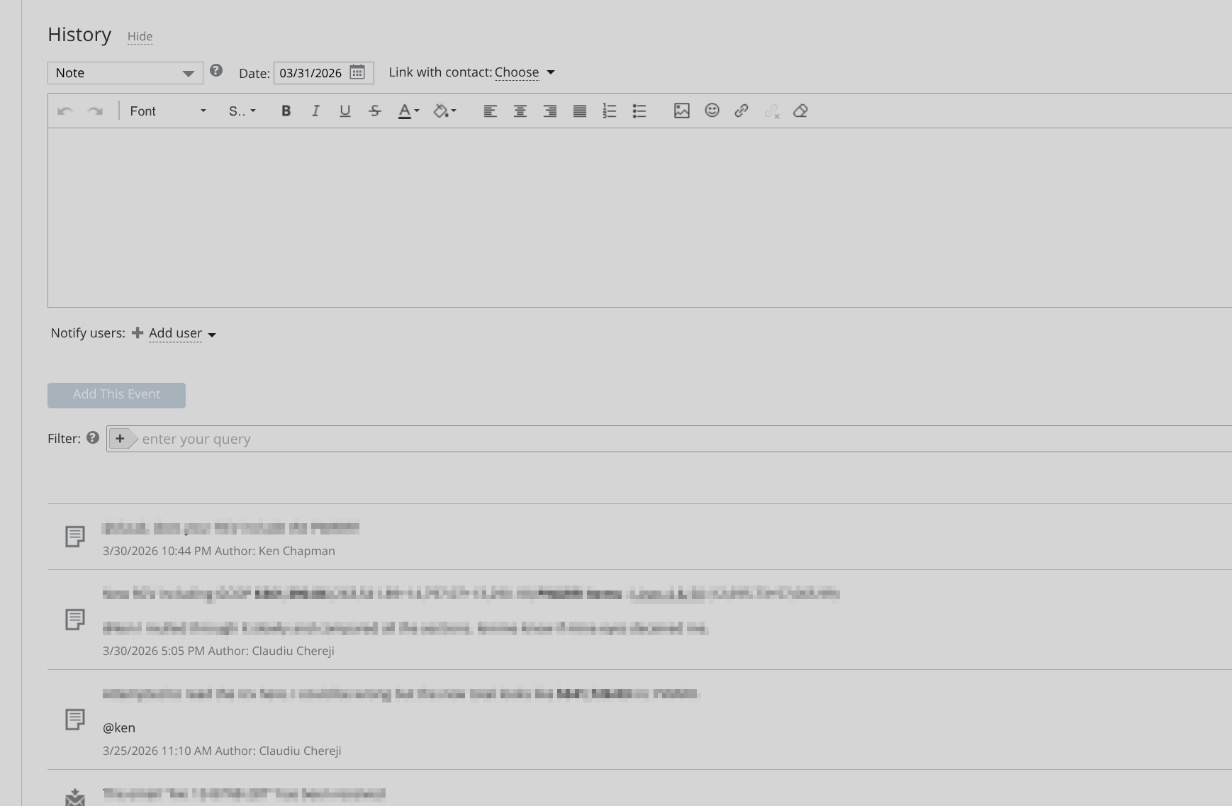 Its almost as if some opportunities have a max limit for notes because others still have notes going back a year or more. Where one important opportunity just lost everything up to December.