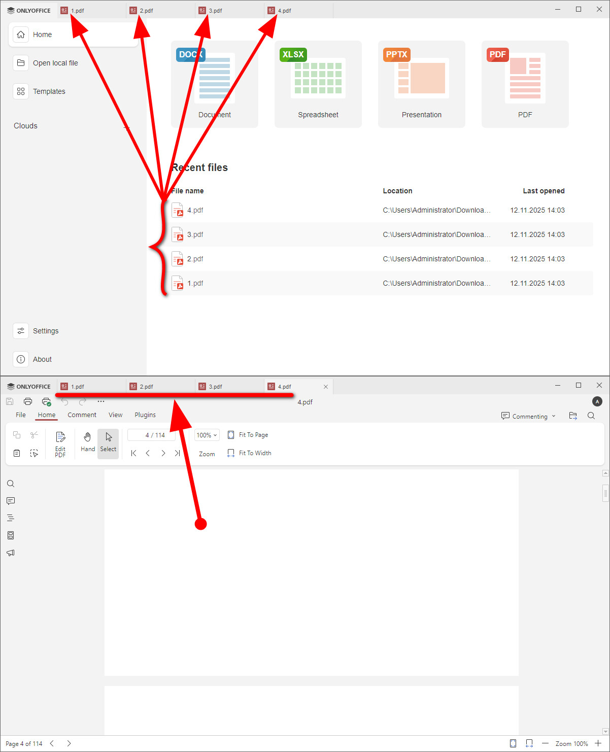 But when I tried to find a way of merging / combining 4 PDF files, I did not find it anywhere in the ONLYOFFICE app. The only thing I found is how to compare and/or combine 2 or more Word documents.