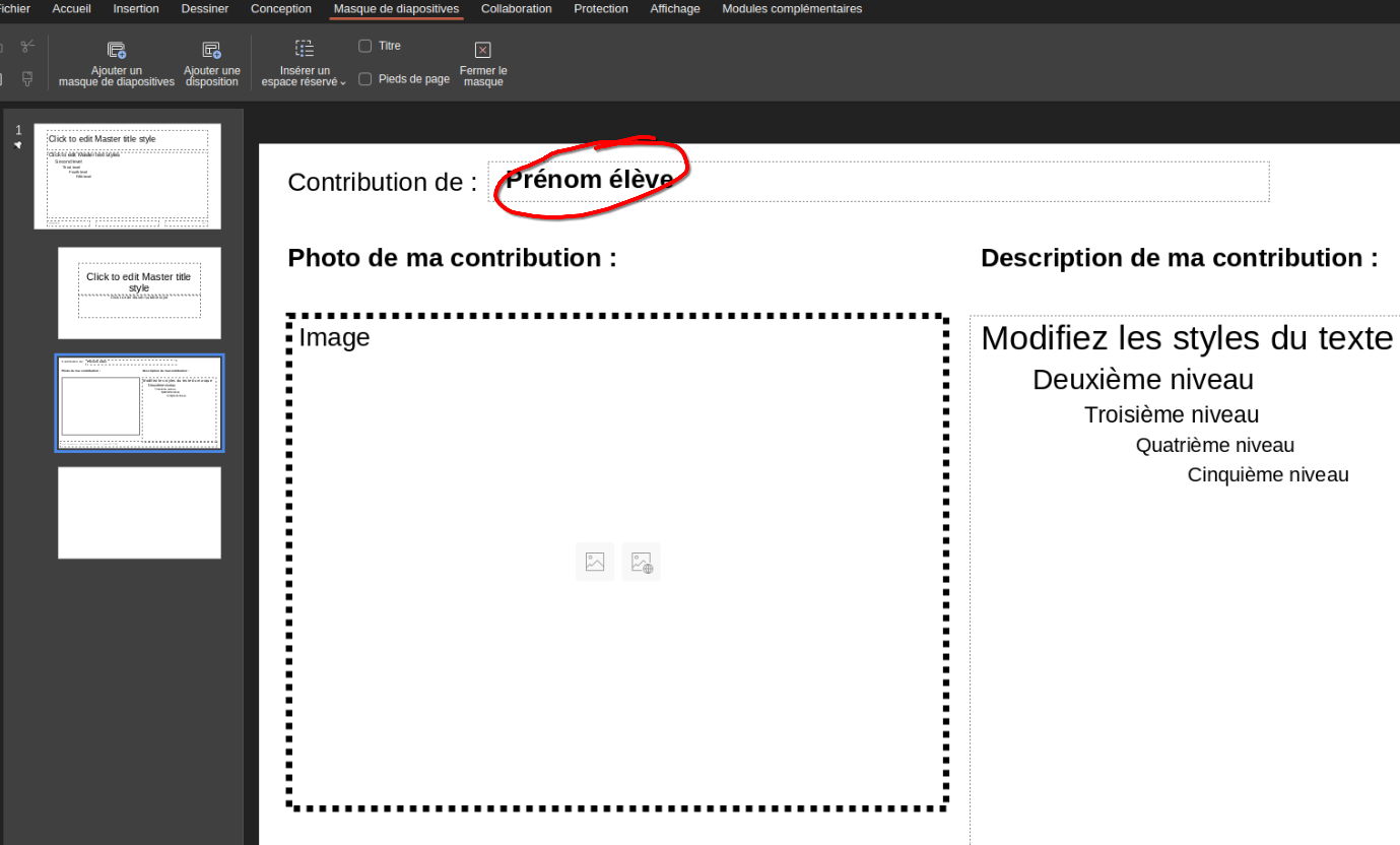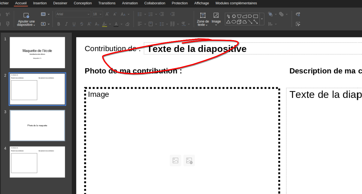 I want to specify the text display in a text area in a slide created via the templates in the mask.