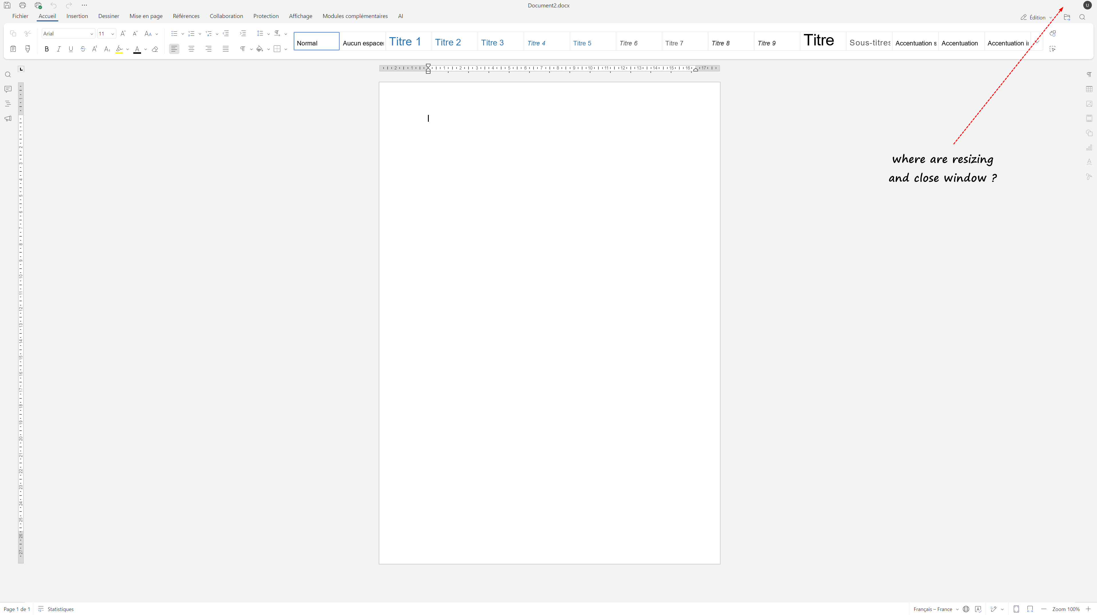 I open OnlyOffice desktop. I put the window on screen 2. Resizing and close window are present.