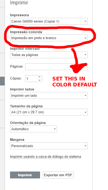 Set to print in color by default.