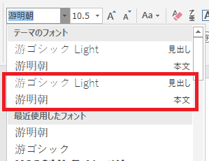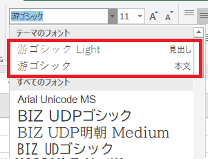 The font in the red box is a Japanese font in the theme fonts. Many Japanese documents created with MS Office use this font for the Japanese text.