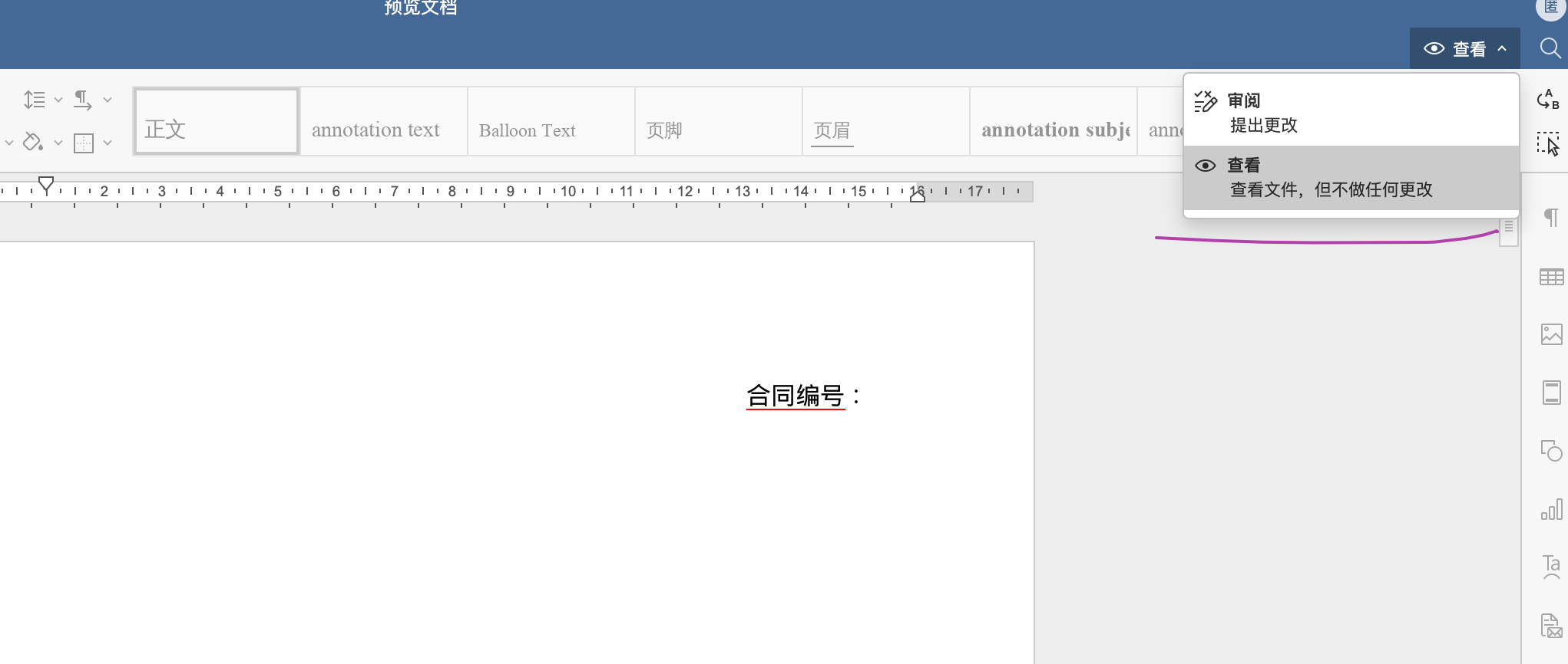 审阅文档本身就属于编辑操作,因此无法将“审阅模式”和“仅查看模式”组合在一起使用。