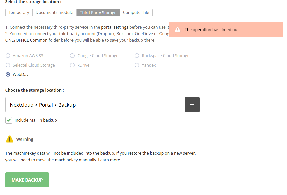 First try (backup to Third-Party Storage):