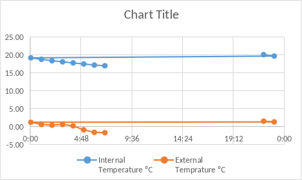 I have two sets of data collected at hourly intervals, 22:00, 23:00, … 07:00 so 3 columns. The first column is the time the data was taken, the next 2 columns are temperatures.